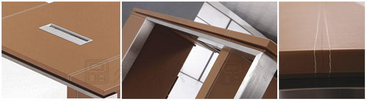 ※ 上图为茶几和洽谈台的推荐款,实木面、不锈钢脚架,也可做皮革茶几面,上面垫铺钢化玻璃,防止水渗入皮革而快速老化!